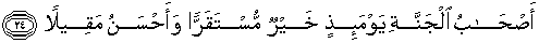24. Penghuni-penghuni surga pada hari itu palig baik tempat tinggalnya dan paling indah tempat istirahatnya.