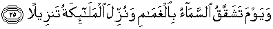 25. Dan (ingatlah) hari (ketika) langit pecah belah mengeluarkan kabut putih dan diturunkanlah malaikat bergelombang-gelombang.