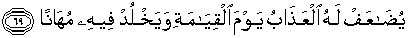 69. (yakni) akan dilipat gandakan azab untuknya pada hari kiamat dan dia akan kekal dalam azab itu, dalam keadaan terhina,