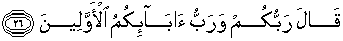 26. Musa berkata (pula): "Tuhan kamu dan Tuhan nenek-nenek moyang kamu yang dahulu."