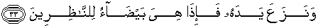 33. Dan ia menarik tangannya (dari dalam bajunya), maka tiba-tiba tangan itu jadi putih (bersinar) bagi orang-orang yang melihatnya.