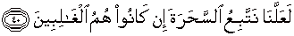 40. semoga kita mengikuti ahli-ahli sihir jika mereka adalah orang-orang yang menang