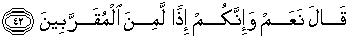 42. Fir'aun menjawab: "Ya, kalau demikian, sesungguhnya kamu sekalian benar-benar akan menjadi orang yang didekatkan (kepadaku)."