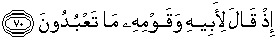 70. Ketika ia berkata kepada bapaknya dan kaumnya: "Apakah yang kamu sembah?"