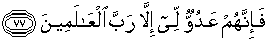 77. karena sesungguhnya apa yang kamu sembah itu adalah musuhku, kecuali Tuhan Semesta Alam,