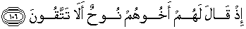 106. Ketika saudara mereka (Nuh) berkata kepada mereka: "Mengapa kamu tidak bertakwa?