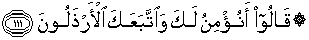 111. Mereka berkata: "Apakah kami akan beriman kepadamu, padahal yang mengikuti kamu ialah orang-orang yang hina?."
