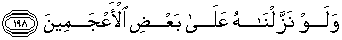 198. Dan kalau Al Quran itu Kami turunkan kepada salah seorang dari golongan bukan Arab,