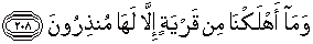 208. Dan Kami tidak membinasakan sesuatu negeripun, melainkan sesudah ada baginya orang-orang yang memberi peringatan;