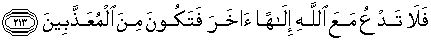 213. Maka janganlah kamu menyeru (menyembah) tuhan yang lain di samping Allah, yang menyebabkan kamu termasuk orang-orang yang di'azab.