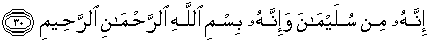 30. Sesungguhnya surat itu, dari SuIaiman dan sesungguhnya (isi)nya: "Dengan menyebut nama Allah Yang Maha Pemurah lagi Maha Penyayang.