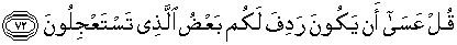 72. Katakanlah: "Mungkin telah hampir datang kepadamu sebagian