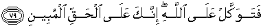 79. Sebab itu bertakwalah kepada Allah, sesungguhnya kamu berada di atas kebenaran yang nyata.