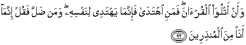92. Dan supaya aku membacakan Al Quran (kepada manusia). Maka