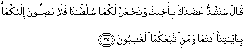 35. Allah berfirman: "Kami akan membantumu dengan saudaramu, dan Kami