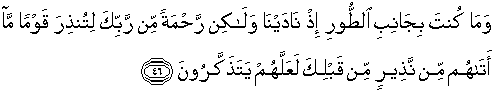 46. Dan tiadalah kamu berada di dekat gunung Thur ketika Kami menyeru