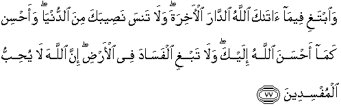 77. Dan carilah pada apa yang telah dianugerahkan Allah kepadamu