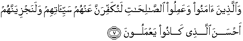 7. Dan orang-orang yang beriman dan beramal saleh, benar-benar akan Kami hapuskan dari mereka dosa-dosa mereka dan benar-benar akan Kami beri mereka balasan yang lebih baik dari apa yang mereka kerjakan.