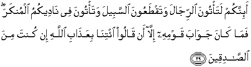 29. Apakah sesungguhnya kamu patut mendatangi laki-laki, menyamun[1149] dan