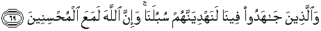 69. Dan orang-orang yang berjihad untuk (mencari keridhaan) Kami, benar- benar akan Kami tunjukkan kepada mereka jalan-jalan Kami. Dan sesungguhnya Allah benar-benar beserta orang-orang yang berbuat baik.