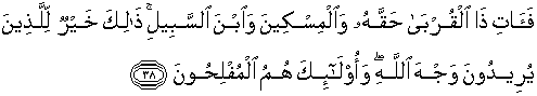 38. Maka berikanlah kepada kerabat yang terdekat akan haknya, demikian