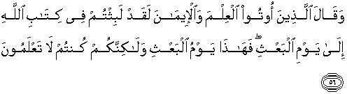 56. Dan berkata orang-orang yang diberi ilmu pengetahuan dan keimanan
