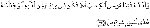 23. Dan Sesungguhnya Kami telah berikan kepada Musa Al-Kitab