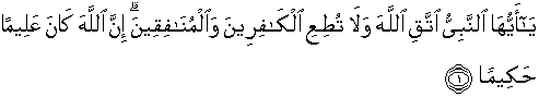 1. Hai Nabi, bertakwalah kepada Allah dan janganlah kamu menuruti
