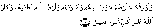 27. Dan Dia mewariskan kepada kamu tanah-tanah, rumah-rumah dan