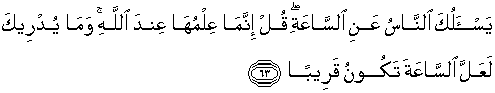 63. Manusia bertanya kepadamu tentang hari berbangkit. Katakanlah: