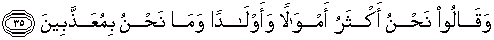 35. Dan mereka berkata: "Kami lebih banyak mempunyai harta dan anak-
