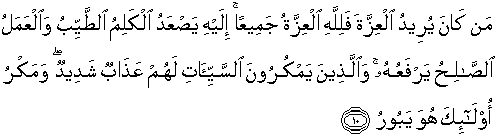 10. Barangsiapa yang menghendaki kemuliaan, maka bagi Allah-lah kemuliaan