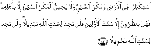 43. karena kesombongan (mereka) di muka bumi dan karena rencana (mereka)