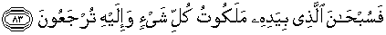 83. Maka Maha Suci (Allah) yang di tangan-Nya kekuasaaan atas segala sesuatu dan kepada-Nyalah kamu dikembalikan.
