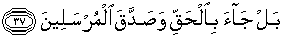 37. Sebenarnya dia (Muhammad) telah datang membawa kebenaran dan membenarkan rasul-rasul (sebelumnya).
