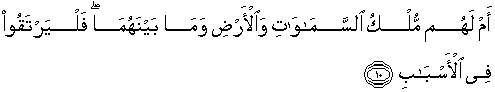 10. Atau apakah bagi mereka kerajaan langit dan bumi dan yang ada di antara keduanya? (Jika ada), maka hendaklah mereka menaiki tangga-tangga (ke langit).