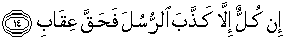 14. Semua mereka itu tidak lain hanyalah mendustakan rasul-rasul, maka pastilah (bagi mereka) azab-Ku.