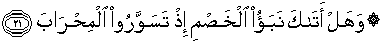 21. Dan adakah sampai kepadamu berita orang-orang yang berperkara ketika mereka memanjat pagar?