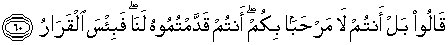 60. Pengikut-pengikut mereka menjawab: "Sebenarnya kamulah. Tiada ucapan selamat datang bagimu, karena kamulah yang menjerumuskan kami ke dalam azab, maka amat buruklah Jahannam itu sebagai tempat menetap."