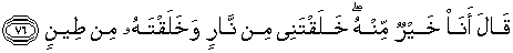 76. Iblis berkata: "Aku lebih baik daripadanya, karena Engkau ciptakan aku dari api, sedangkan dia Engkau ciptakan dari tanah."