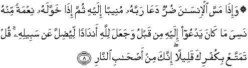 8. Dan apabila manusia itu ditimpa kemudharatan, dia memohon