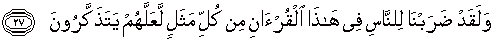 27. Sesungguhnya telah Kami buatkan bagi manusia dalam Al Quran ini setiap macam perumpamaan supaya mereka dapat pelajaran.