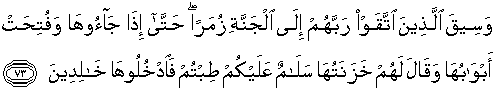 73. Dan orang-orang yang bertakwa kepada Tuhan dibawa ke dalam