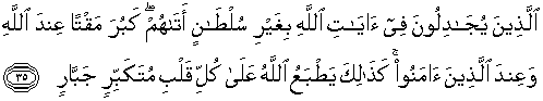 35. (Yaitu) orang-orang yang memperdebatkan ayat-ayat Allah tanpa