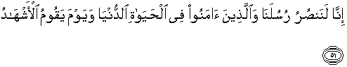 51. Sesungguhnya Kami menolong rasul-rasul Kami dan orang-orang yang beriman dalam kehidupan dunia dan pada hari berdirinya saksi-saksi (hari kiamat),
