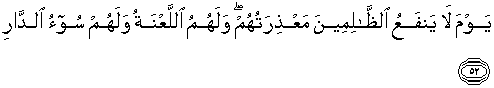 52. (yaitu) hari yang tidak berguna bagi orang-orang zalim permintaan maafnya dan bagi merekalah la'nat dan bagi merekalah tempat tinggal yang buruk.