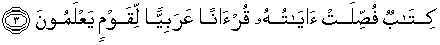 3. Kitab yang dijelaskan ayat-ayatnya, yakni bacaan dalam bahasa Arab, untuk kaum yang mengetahui,