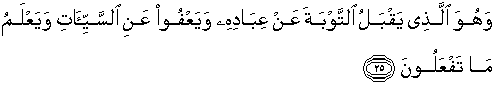 25. Dan Dialah yang menerima taubat dari hamba-hamba-Nya dan memaafkan kesalahan-kesalahan dan mengetahui apa yang kamu kerjakan,