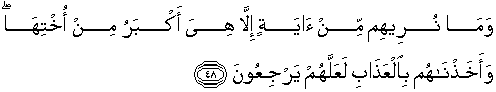 48. Dan tidaklah Kami perlihatkan kepada mereka sesuatu mukjizat