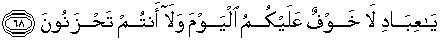 68. "Hai hamba-hamba-Ku, tiada kekhawatiran terhadapmu pada hari ini dan tidak pula kamu bersedih hati.